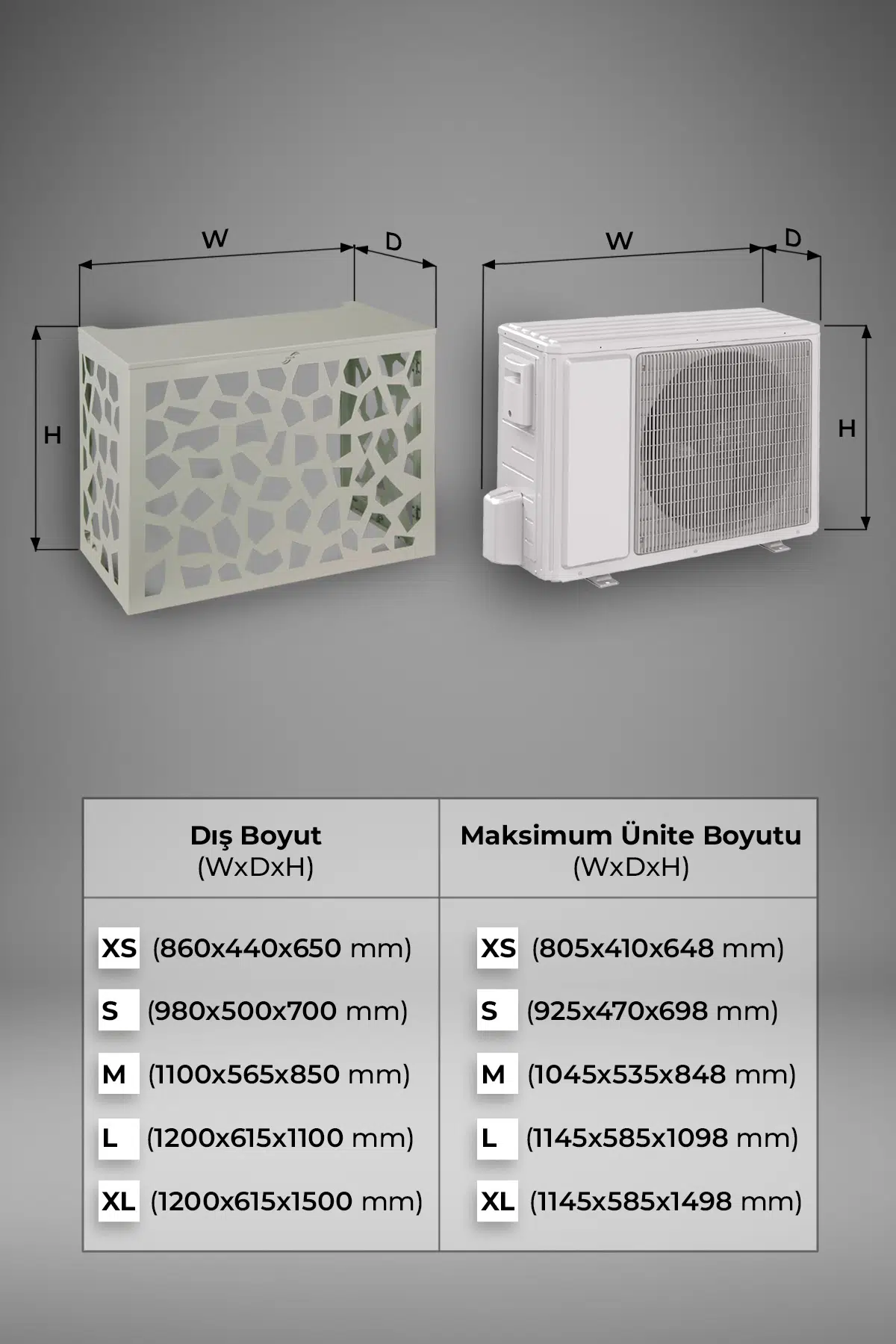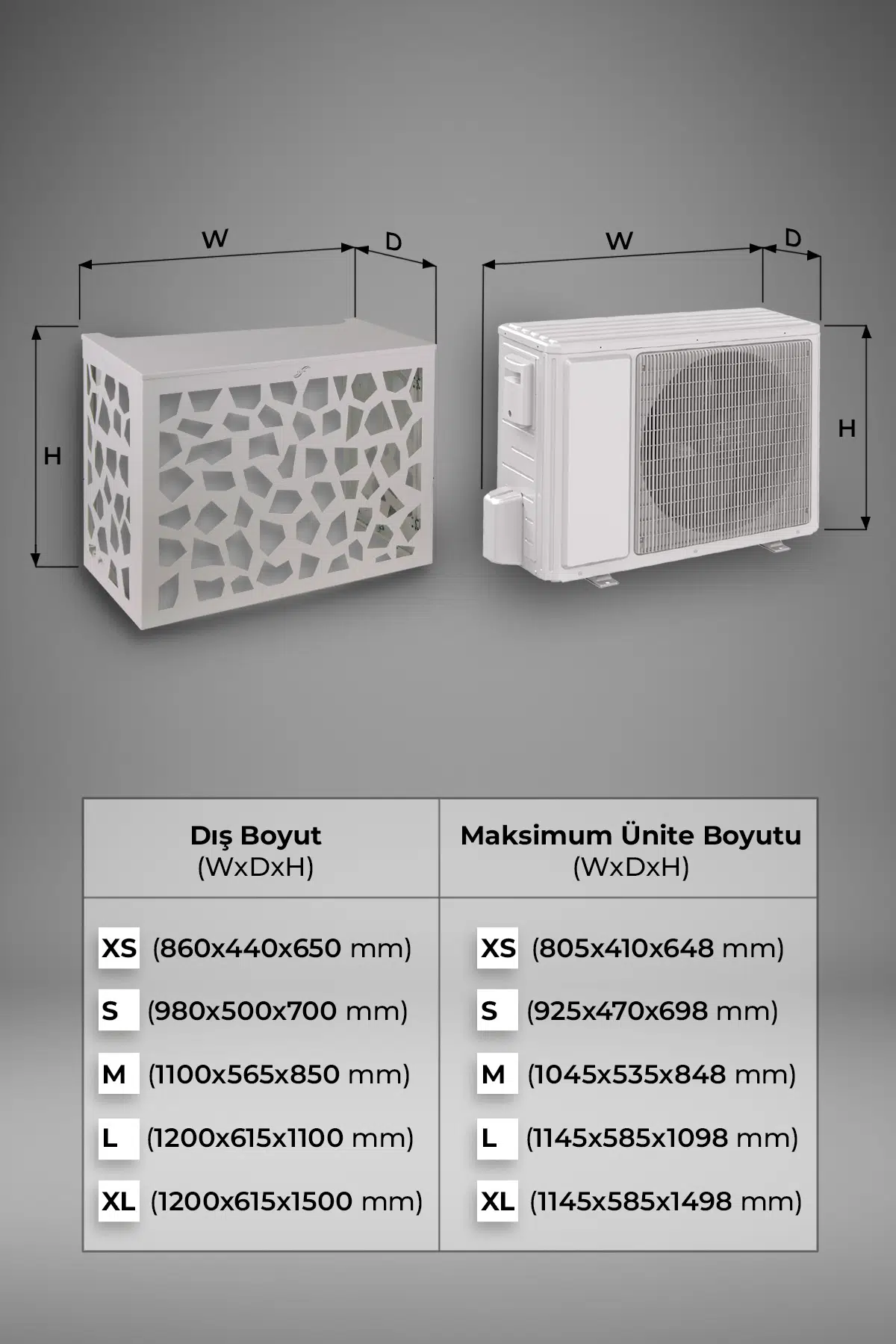 Hafiflik, paslanmaz yapı, estetik tasarım ve uzun ömürlü kullanım arayanlar için üretilen alüminyum klima gizleme kafesi modellerimiz; 1.5 mm sac kalınlığı, korozyon direnci ve elektrostatik toz boya kalitesiyle dış ünite koruma çözümlerinde üst segment bir tercihtir.