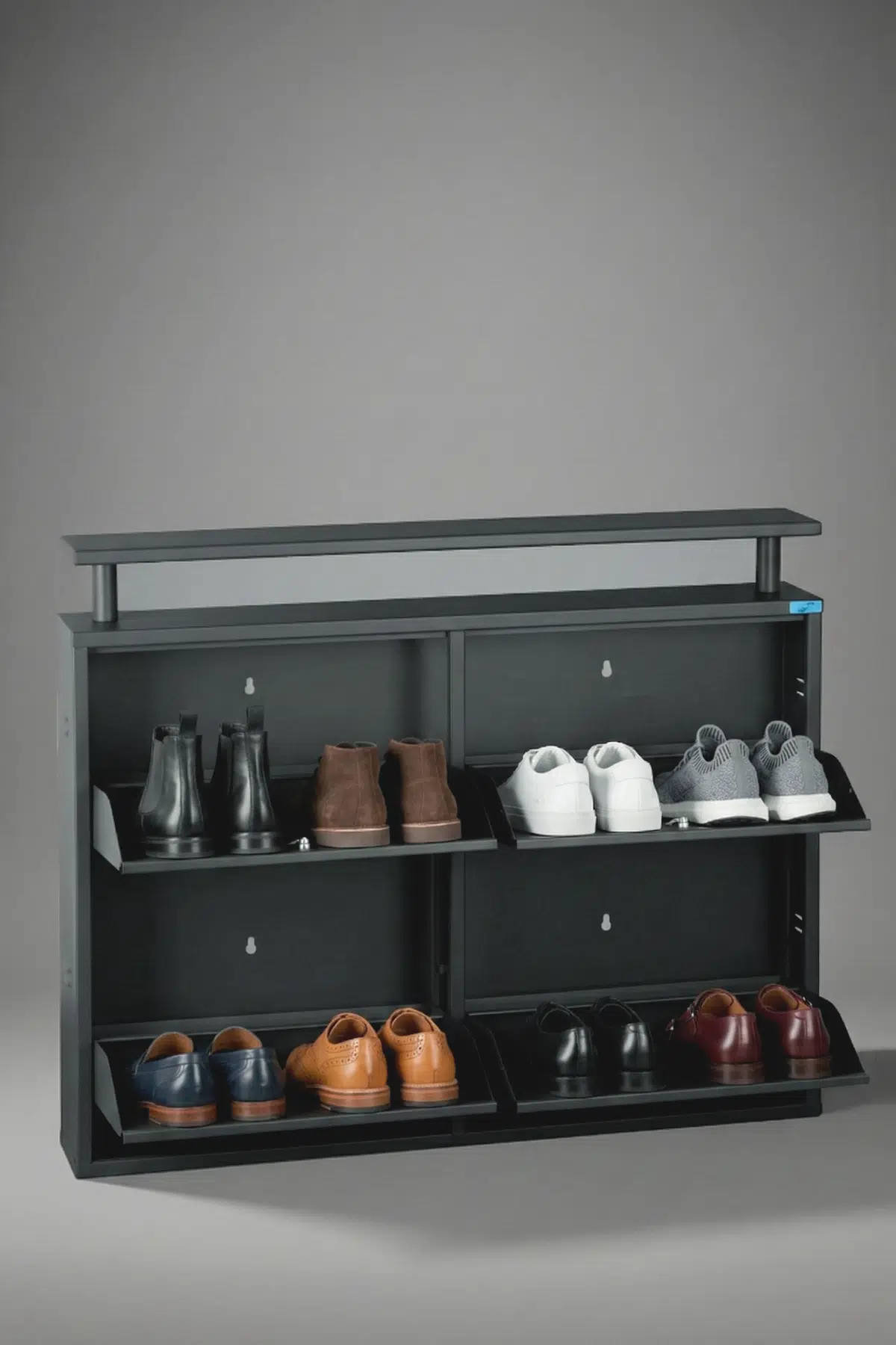 Toz boya kaplamalı metal ayakkabılıklar, çizilmelere, darbelere, neme ve korozyona karşı üstün direnç gösterir. Fırınlama yöntemiyle sertleşen boya, zamanla kabarma, soyulma veya renk solması yapmaz. Bu sayede ürünlerimiz, ev, ofis, apartman ve ticari alanlarda uzun yıllar bakım gerektirmeden güvenle kullanılabilir.